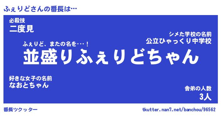 | 意味不明あだ名 | 『ペロリンふぇりど』『永久保存ふぇりど』 |