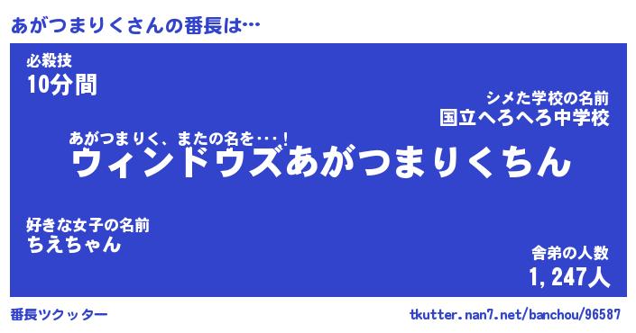 | ヒーロー風カッコイイあだ名 | 『スーパーアガツマリク』『銀牙騎士アガ』 |