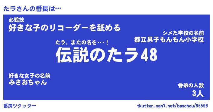 | ヒーロー風カッコイイあだ名 | 『スーパータラ』『ウルトラたラマン』 |