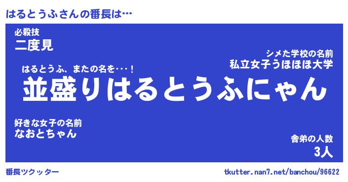 | ポケモン風あだ名 | 『ハルチュウ』『ハルトダネ』 |