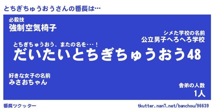 | ポケモン風あだ名 | 『トチチュウ』『トチギダネ』 |