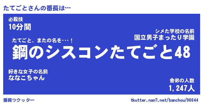 | ヘコむあだ名 | 『たてもー』『なまこ酢』『たてっ子』 |