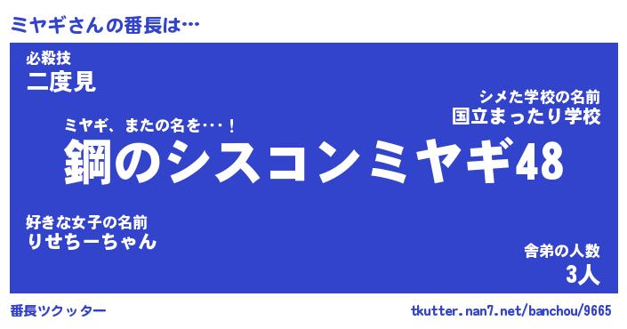 | ヘコむあだ名 | 『ミヤふぇ~』『酢こんぶ』 |