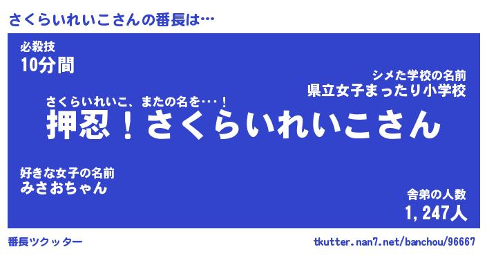 | 恥ずかしいあだ名 | 『プリティーさくらいれいこ』『さくちん』 |