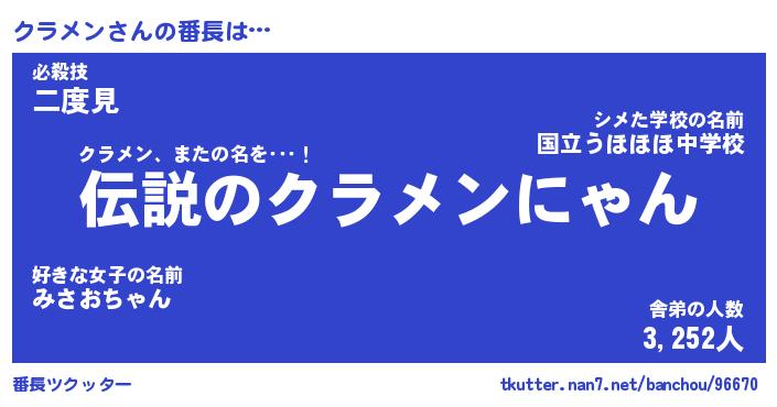 | ヒーロー風カッコイイあだ名 | 『スーパークラメン』『幻影騎士クラ』 |