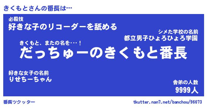 | 肩書あだ名 | 『きくもとCEO』『きくもと国家主席』 |