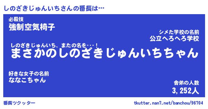 | 男性向けラノベタイトル風あだ名 | 『しのざきじゅんいちの憂鬱』 |