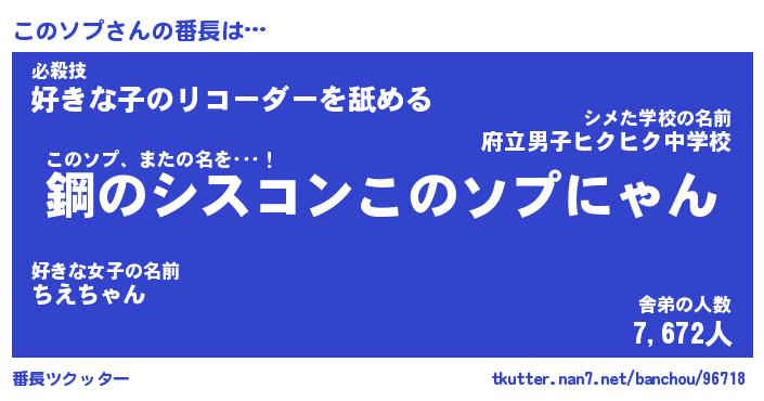| 意味不明あだ名 | 『ペロリンこのソプ』『永久保存このソプ』 |