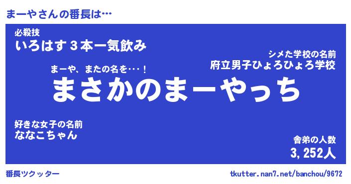 | 伝説のあだ名 | 『伝説のスナイパーまーや』 |
