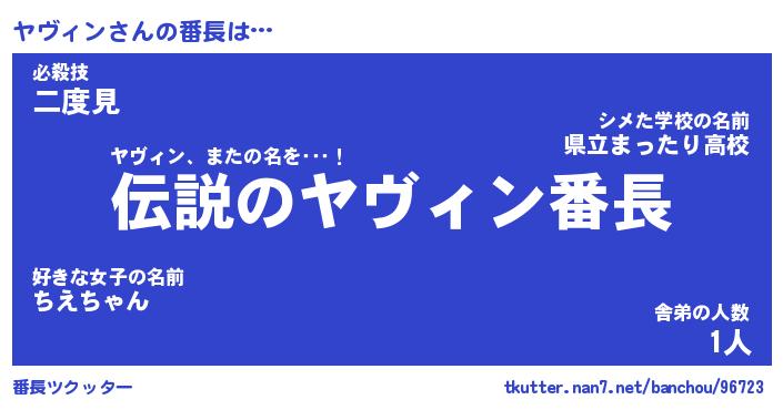 | ファンタジー風あだ名 | 『ヤヴフェル』『エターナルヤヴィンー』 |