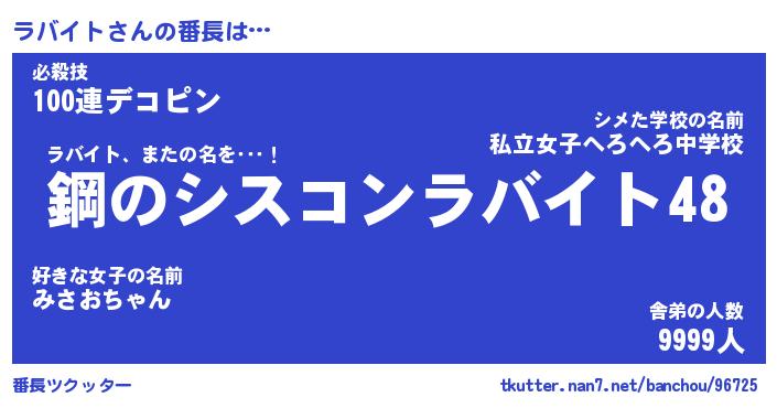 | 意味不明あだ名 | 『ペロリンラバイト』『永久保存ラバイト』 |