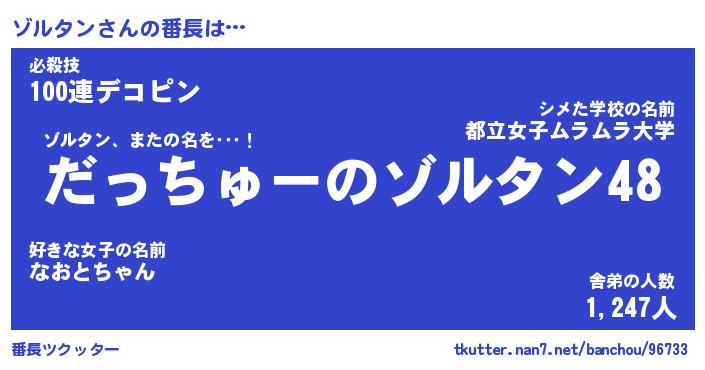 | 意味不明あだ名 | 『ペロリンゾルタン』『永久保存ゾルタン』 |