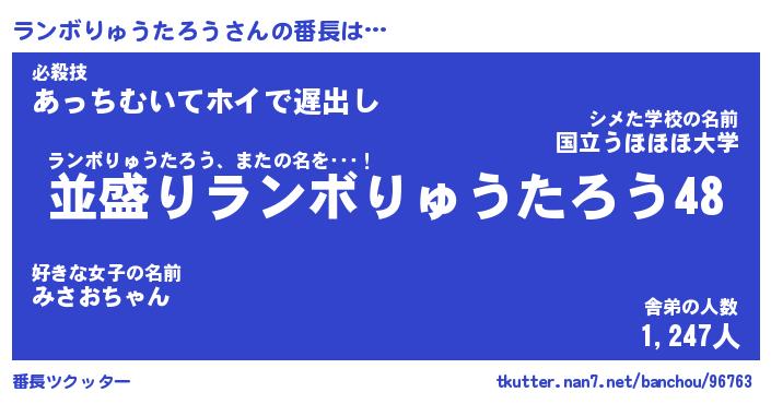 | 男性向けラノベタイトル風あだ名 | 『ランボりゅうたろうの憂鬱』 |