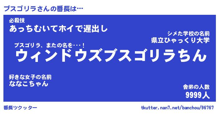 | ヒーロー風カッコイイあだ名 | 『スーパーブスゴリラ』『天弓騎士ブス』 |