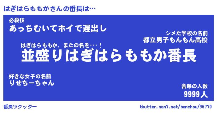 | ヒーロー風カッコイイあだ名 | 『スーパーハギハラモモカ』 |