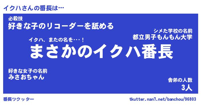 | 意味不明あだ名 | 『ペロリンイクハ』『イクハフォーエバー』 |