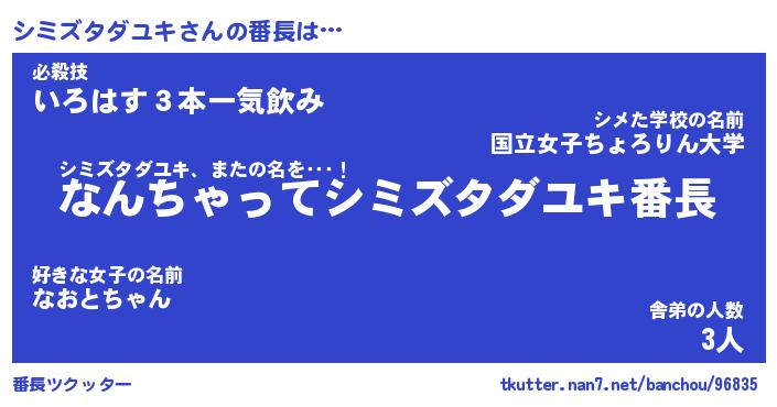 | ヒーロー風カッコイイあだ名 | 『スーパーシミズタダユキ』 |