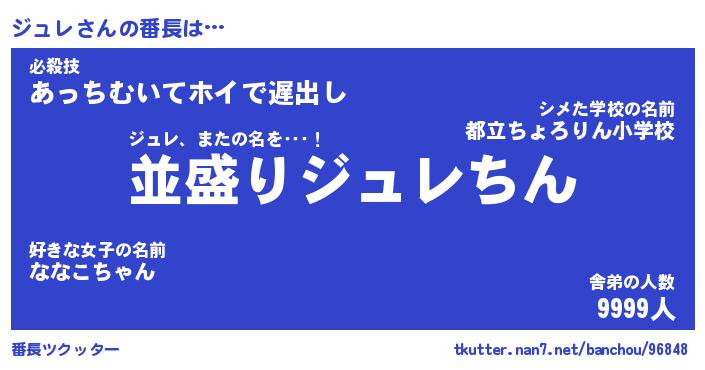 | ポケモン風あだ名 | 『ジュチュウ』『ジュレダネ』 |