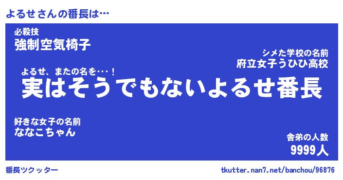 | 肩書あだ名 | 『よるせ社長』『よるせ国家主席』 |