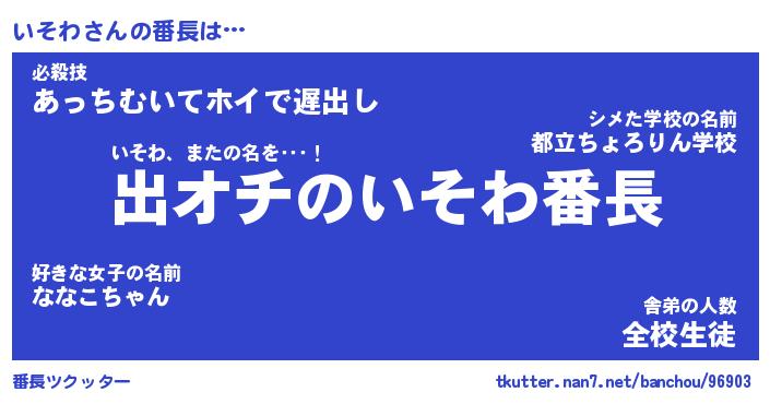 | ポケモン風あだ名 | 『イソチュウ』『イソワダネ』 |