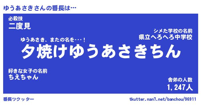 | ファンタジー風あだ名 | 『ユウフェル』『エターナルユウアサキー』 |