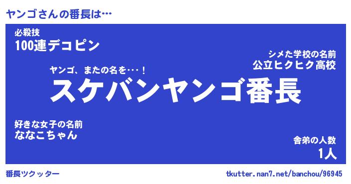 | ヘコむあだ名 | 『ヤンにー』『つくし』『ヤン太郎』 |