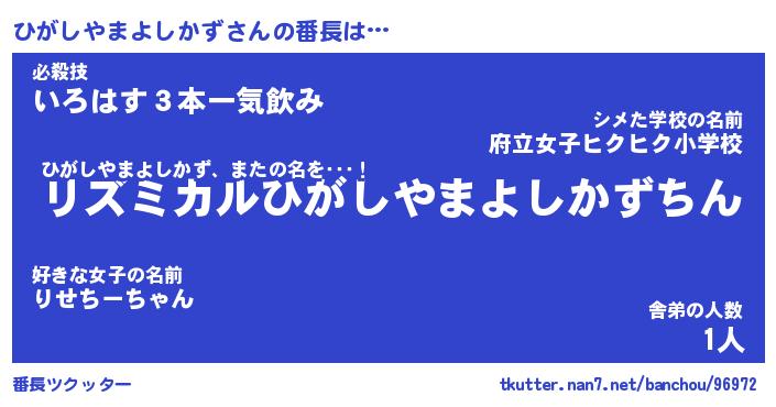 | 肩書あだ名 | 『ひがしやまよしかずCEO』 |