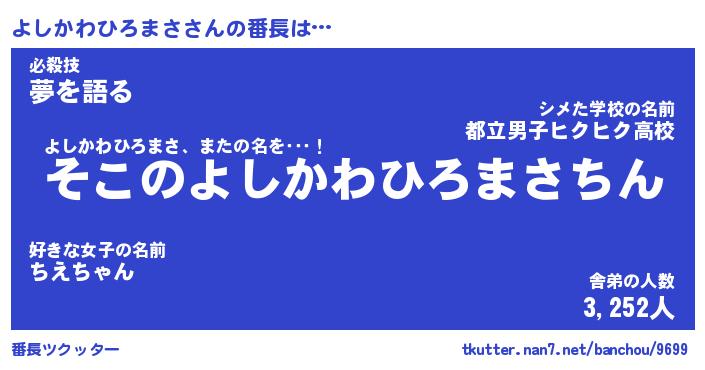 | 肩書あだ名 | 『よしかわひろまさ御曹司』 |