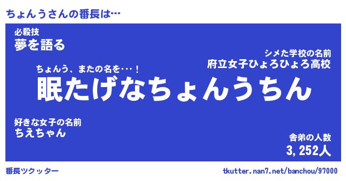 | 意味不明あだ名 | 『ペロリンちょんう』『永久保存ちょんう』 |