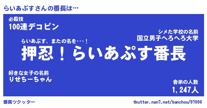 | ヘコむあだ名 | 『らいもー』『つくし』『らい太郎』 |