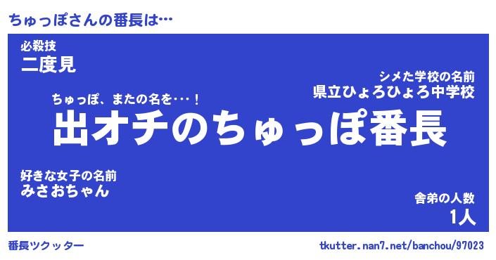 | ヒーロー風カッコイイあだ名 | 『スーパーチュッポ』『黄金騎士チュ』 |