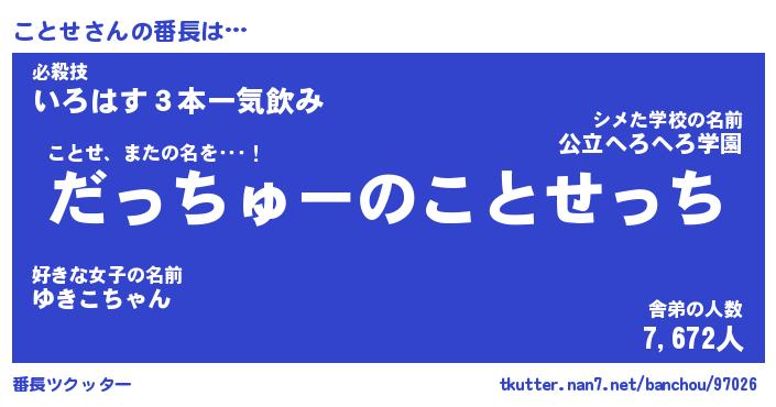 | ヒーロー風カッコイイあだ名 | 『スーパーコトセ』『ウルトラことせマン』 |