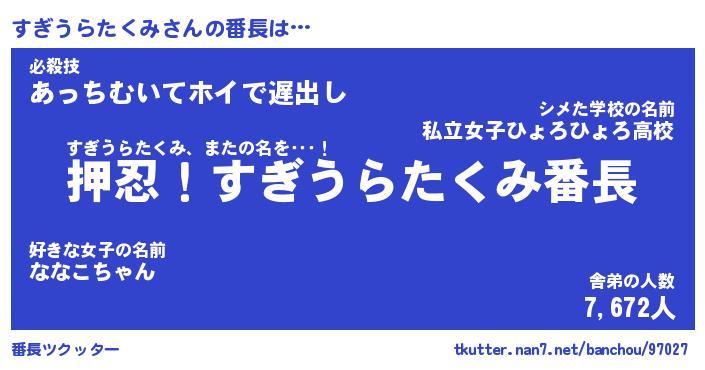| 伝説のあだ名 | 『封印されしスナイパーすぎうらたくみ』 |
