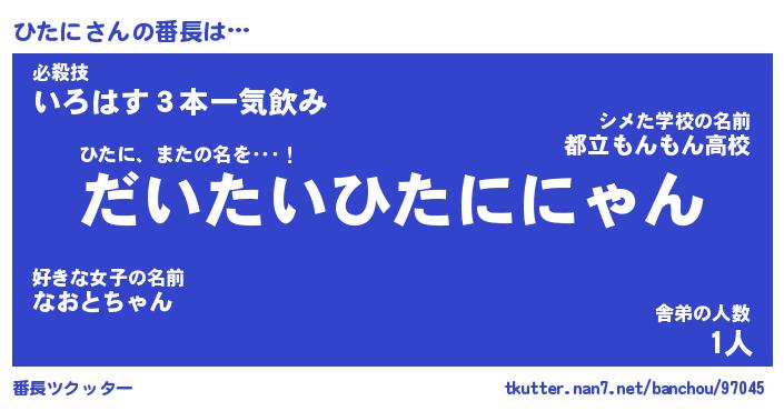 | ヘコむあだ名 | 『ひたにゅー』『なまこ酢』『ひたお』 |