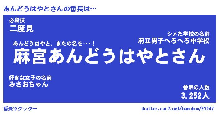 | 肩書あだ名 | 『あんどうはやとCEO』 |