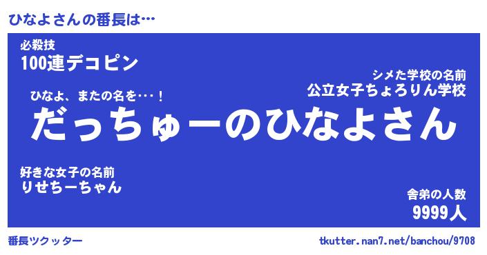 | 肩書あだ名 | 『ひなよ社長令嬢』『ひなよ総理大臣』 |