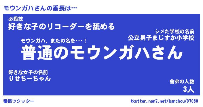 | ヒーロー風カッコイイあだ名 | 『スーパーモウンガハ』『幻影騎士モウ』 |
