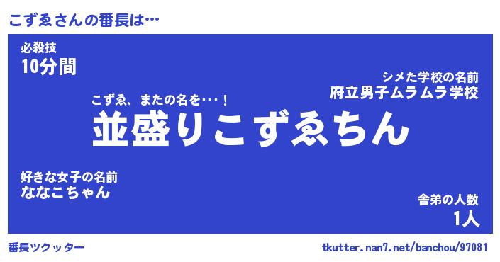 | 2回繰り返すあだ名 | 『こずこず』『ここずず』『いじいじ』 |