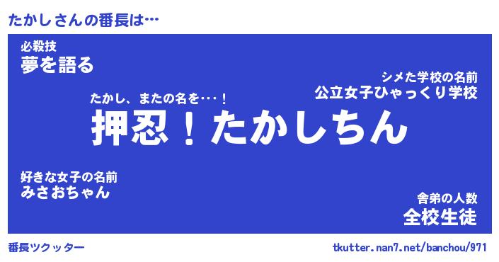 | ポケモン風あだ名 | 『タカチュウ』『タカシダネ』 |