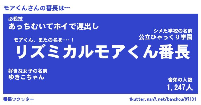 | 肩書あだ名 | 『モアくん御曹司』『モアくん総理大臣』 |