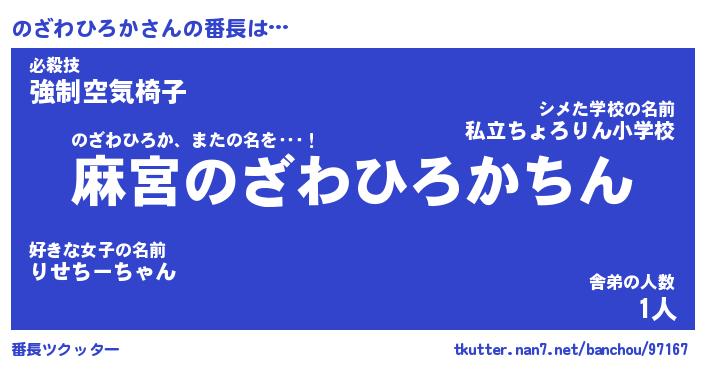 | ポケモン風あだ名 | 『ノザチュウ』『ノザワダネ』 |