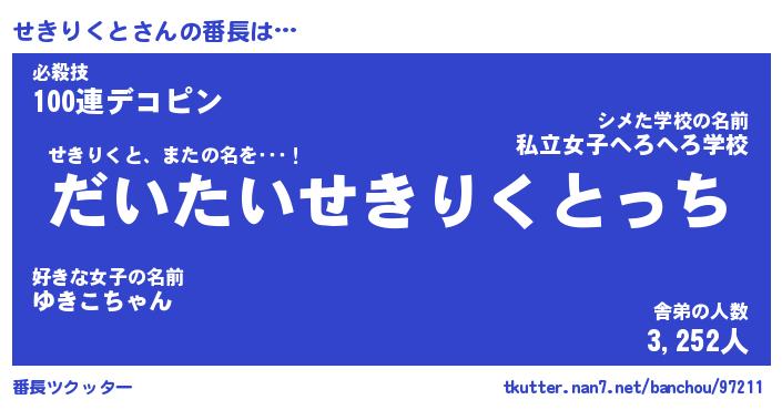 | 2回繰り返すあだ名 | 『せきせき』『せせきき』『ぐるぐる』 |