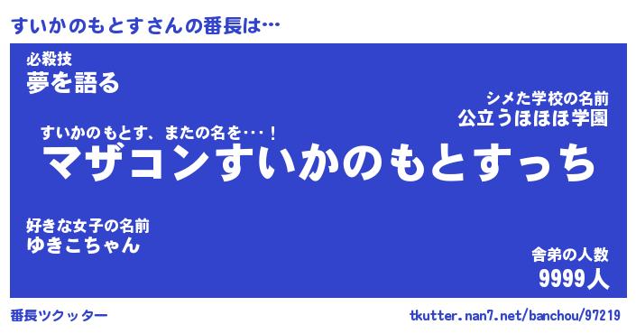 | 伝説のあだ名 | 『封印されしスナイパーすいかのもとす』 |