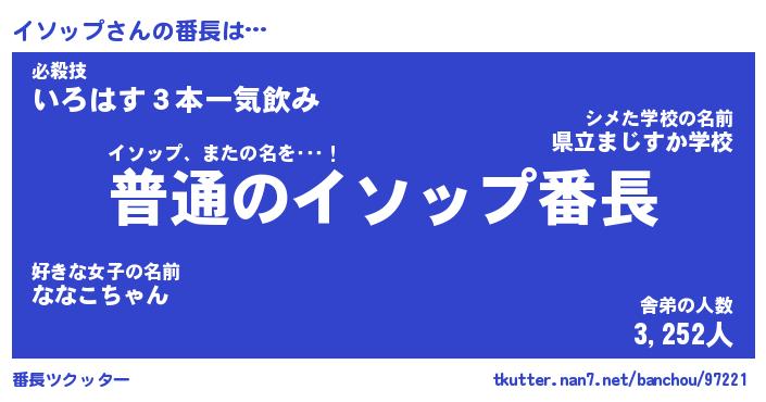 | 肩書あだ名 | 『イソップ社長』『イソップ総理大臣』 |
