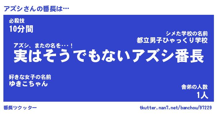| 肩書あだ名 | 『アズシ店長』『アズシ国家主席』 |