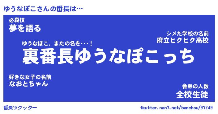 | 肩書あだ名 | 『ゆうなぽこ社長令嬢』『ゆうなぽこ班長』 |