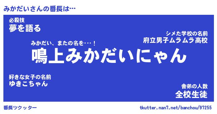 | 胡散臭い通販商品みたいなあだ名 | 『億万長者になれる水晶球…その名も「みかだい」』 |