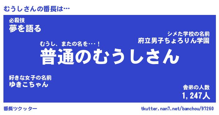 | ヒーロー風カッコイイあだ名 | 『スーパームウシ』『ウルトラむうしマン』 |