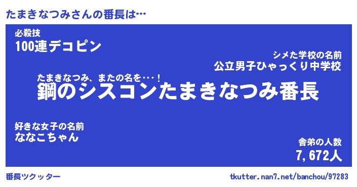 | 恥ずかしいあだ名 | 『プリティーたまきなつみ』『たまっちょ』 |