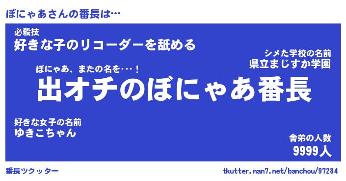 | 意味不明あだ名 | 『ペロリンぼにゃあ』『永久保存ぼにゃあ』 |